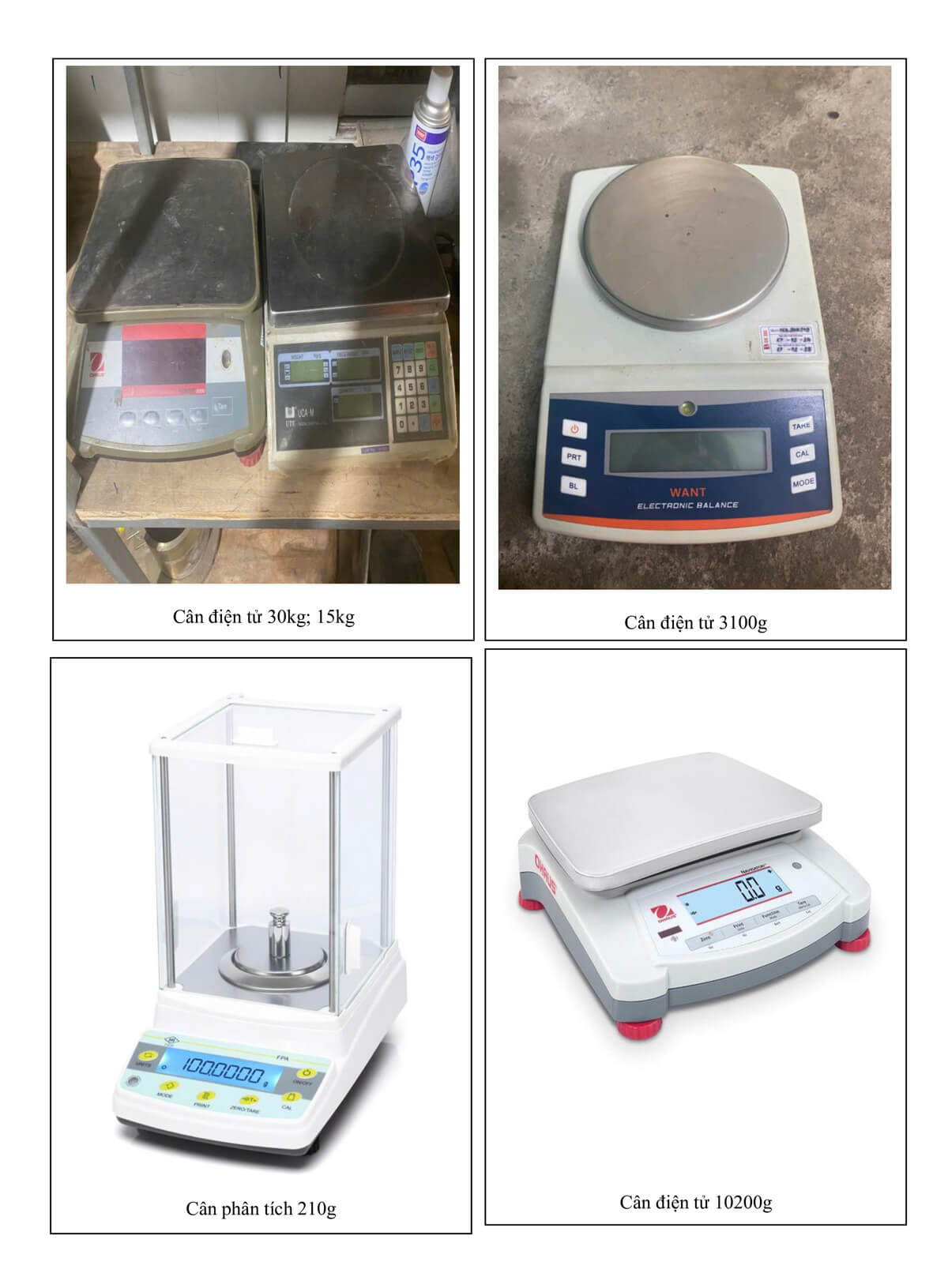Danh sách thiết bị hiệu chuẩn